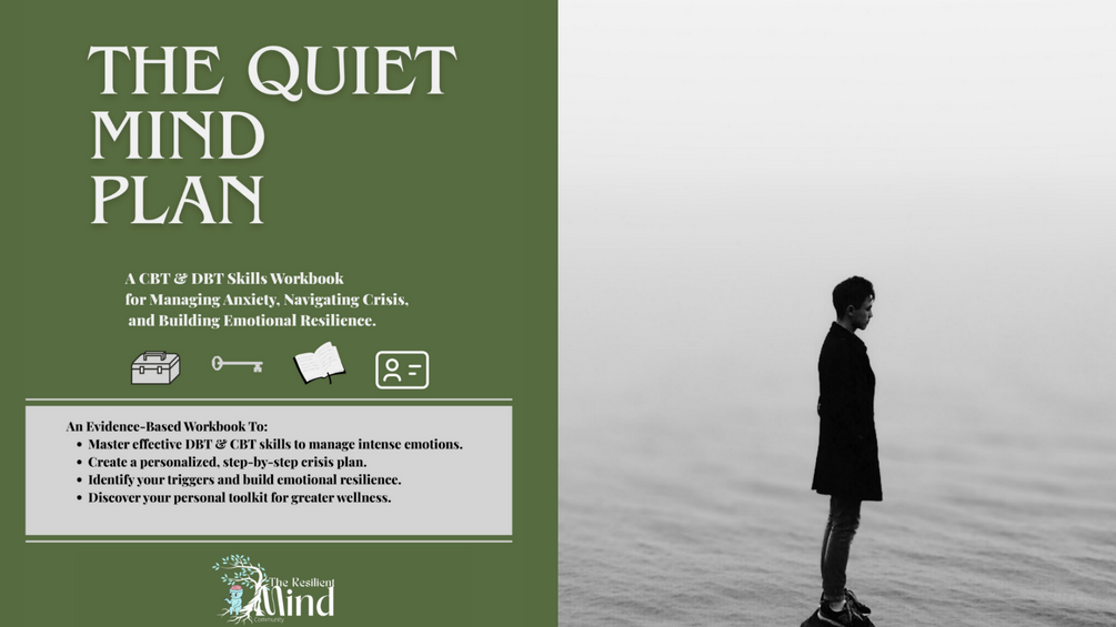 Built to work when your brain is overwhelmed — not just on calm days. The Quiet Mind Plan strips clinically backed CBT & DBT techniques into a single, usable blueprint so you can follow clear steps the moment panic, overwhelm, or crisis hits.